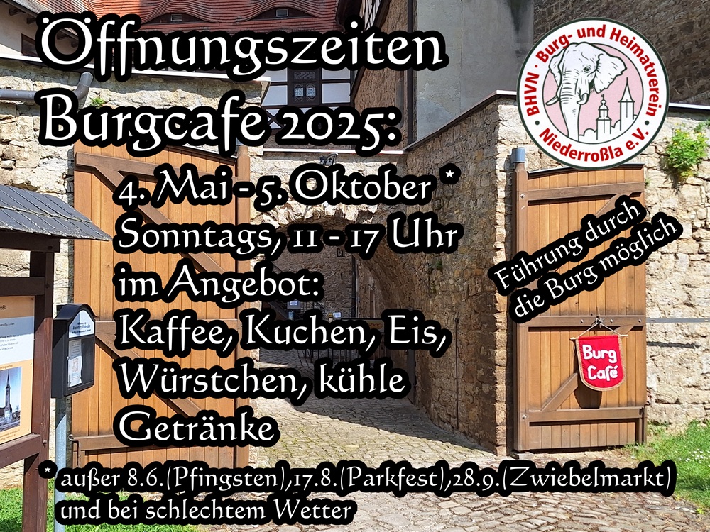 jeden Sonntag 04.05.2025 - 05.10.2025 / Öffnungszeit der Torwache: "Burgcafe" 11 - 17 Uhr
